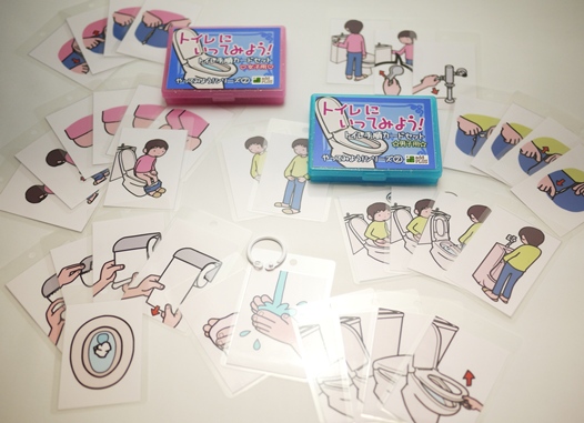 トイレ手順を絵カードでわかりやすく提示できる手順書キットです。
